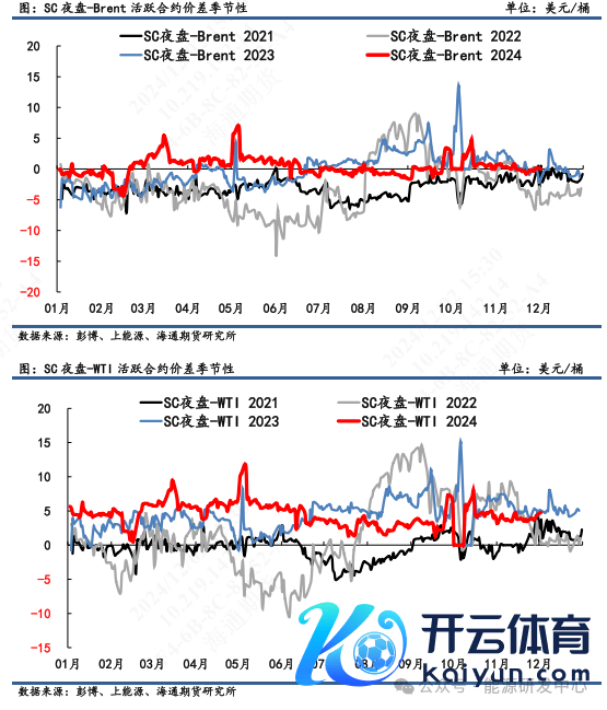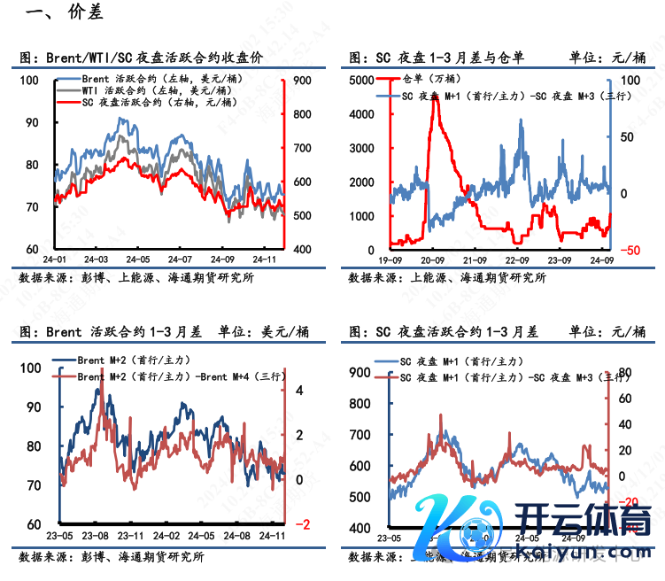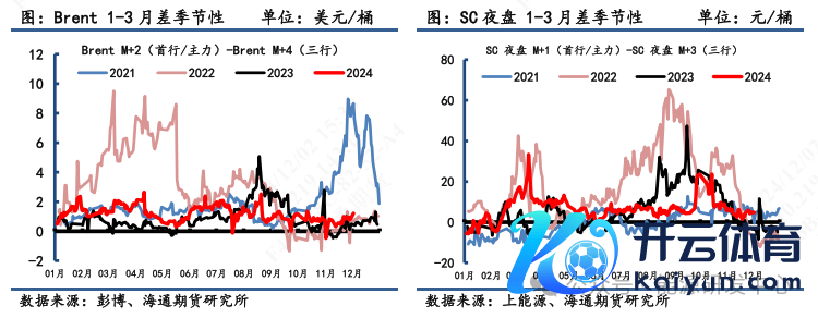 1) 价差:11月29日,SC 夜盘1-3月差为4.80元/桶,Brent 1-3月差为1.21好意思元/桶,WTI 1-3月差为0.51好意思元/桶。SC夜盘-Brent主力合约为0.15好意思元/桶,SC夜盘-WTI主力合约为4.34好意思元/桶。