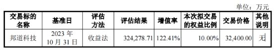 鉴于卓信大华出具的以2023年10月31日为评估基准日的财富评估叙述有用期至2024年10月31日,为爱护公司及全体激动的利益,考据邦谈科技的股权价值未发生不利变化,卓信大华以2024年6月30日为基准日,对邦谈科技进行了加期评估,出具加期评估叙述。经加期评估考据,邦谈科技100.00%股权的加期评估后果为325,223.30万元,较以2023年10月31日为基准日的评估后果未出现评估减值情况,加期评估后果不会对本次往复组成骨子影响。本次往复的地点财富作价仍以评估基准日2023年10月31日的评估后果为依据,往复作价不变。本次加期评估后果不算作作价依据,加期评估后果仅为考据评估基准日2023年10月31日的评估后果未发生减值,不波及诊治本次往复地点财富的作价,亦不波及诊治本次往复决策,不会对本次往复组成骨子影响。