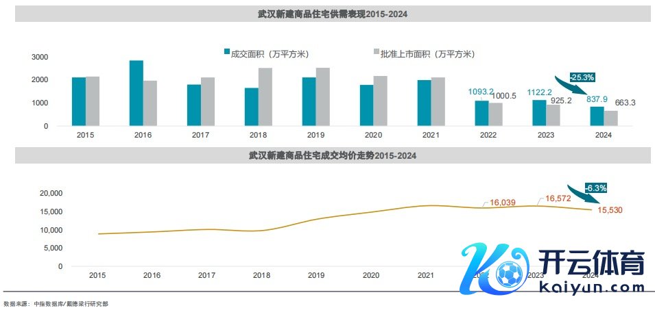 商品住宅方面,武汉2024年景交商品住宅面积837.9万正常米,同比客岁下落约25.3%;市集成交均价15530元/正常米,较2023年下落约6.3%。其中,中心城区的房价同比客岁降幅均达到10%以上,这也激励了市集需求的开释,中心城区占全市成交面积的38.3%。