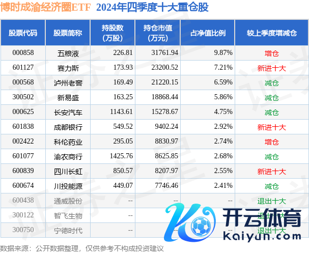 博时成渝经济圈ETF为指数型-股票基金,凭证最新一期基金季报露馅,该基金钞票成立:股票占净值比98.38%,无债券类钞票,现款占净值比1.67%。基金十大重仓股如下: