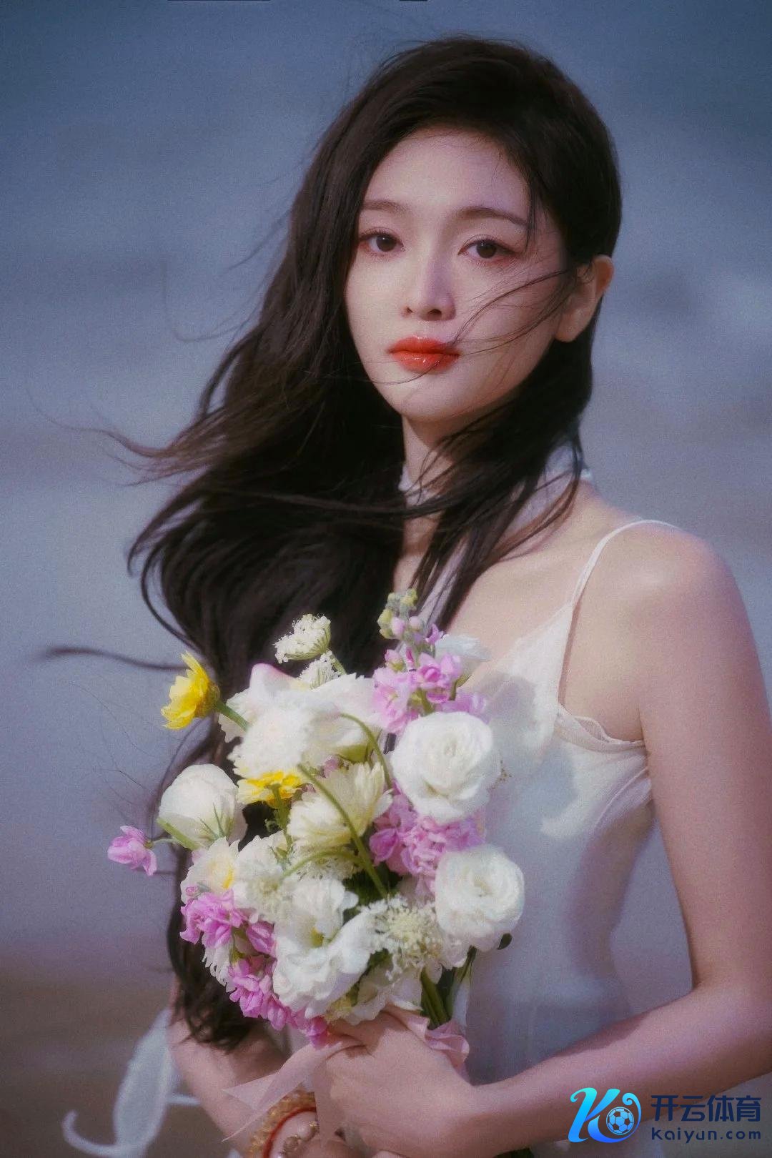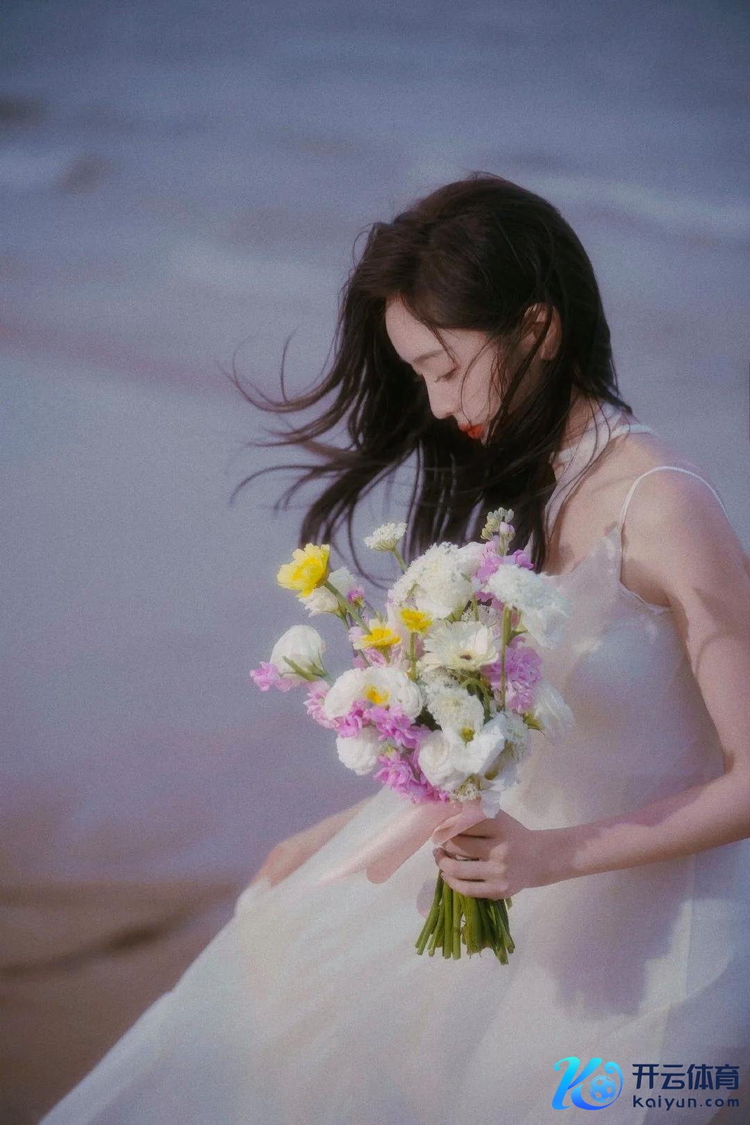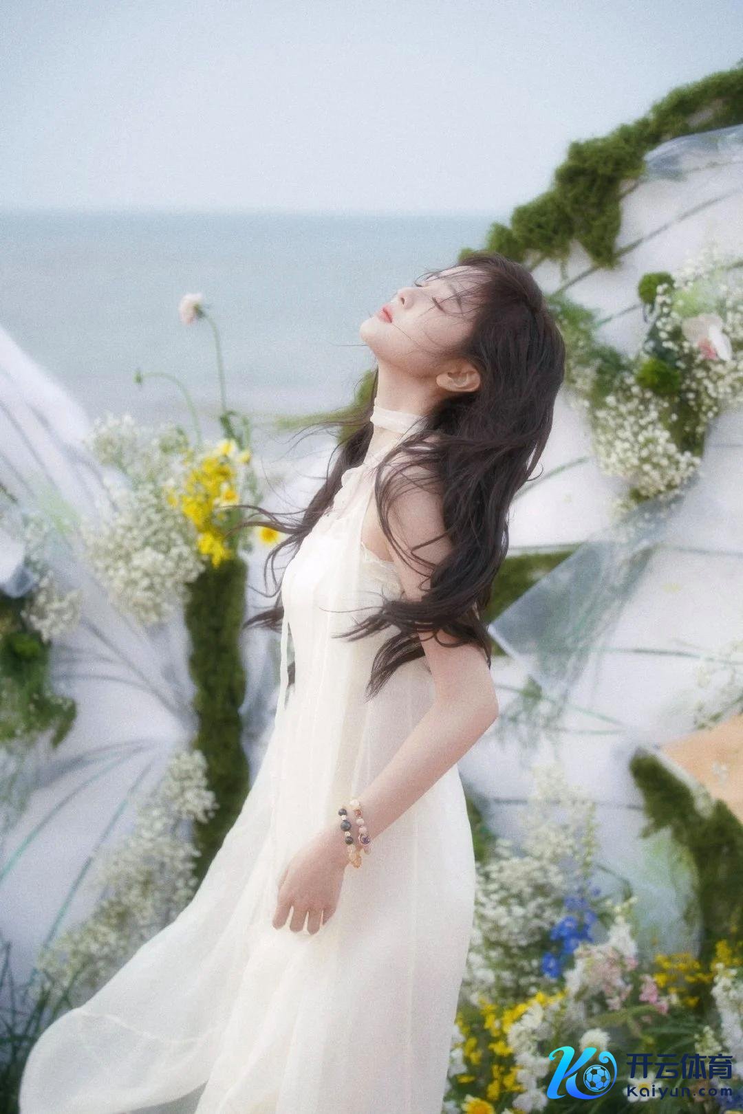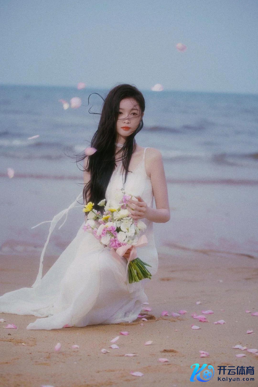 在这组海边写照中,吴宣仪以一袭超脱的白纱裙亮相,宛如画中走出的仙子。她与海风、花语的完整交融,展现了她温顺、崭新的当然之好意思。无论是狭窄的白纱裙摆、五彩斑斓的花束,已经她那如水般涌现的眼神,每一处细节齐让东说念主感受到一种难以言喻的荒诞与纯净。